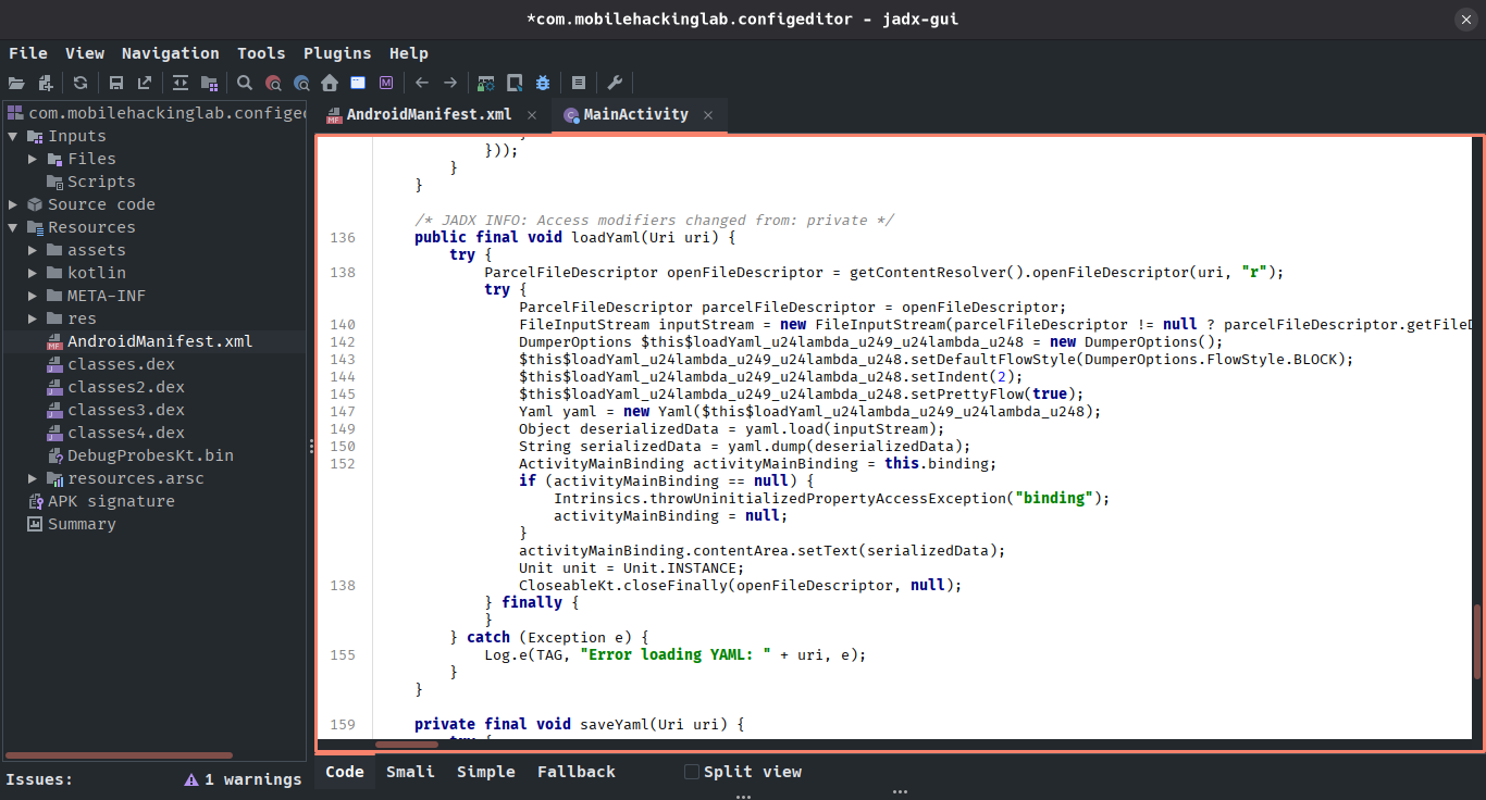 ❯ jadx-gui com.mobilehackinglab.configeditor.apk&