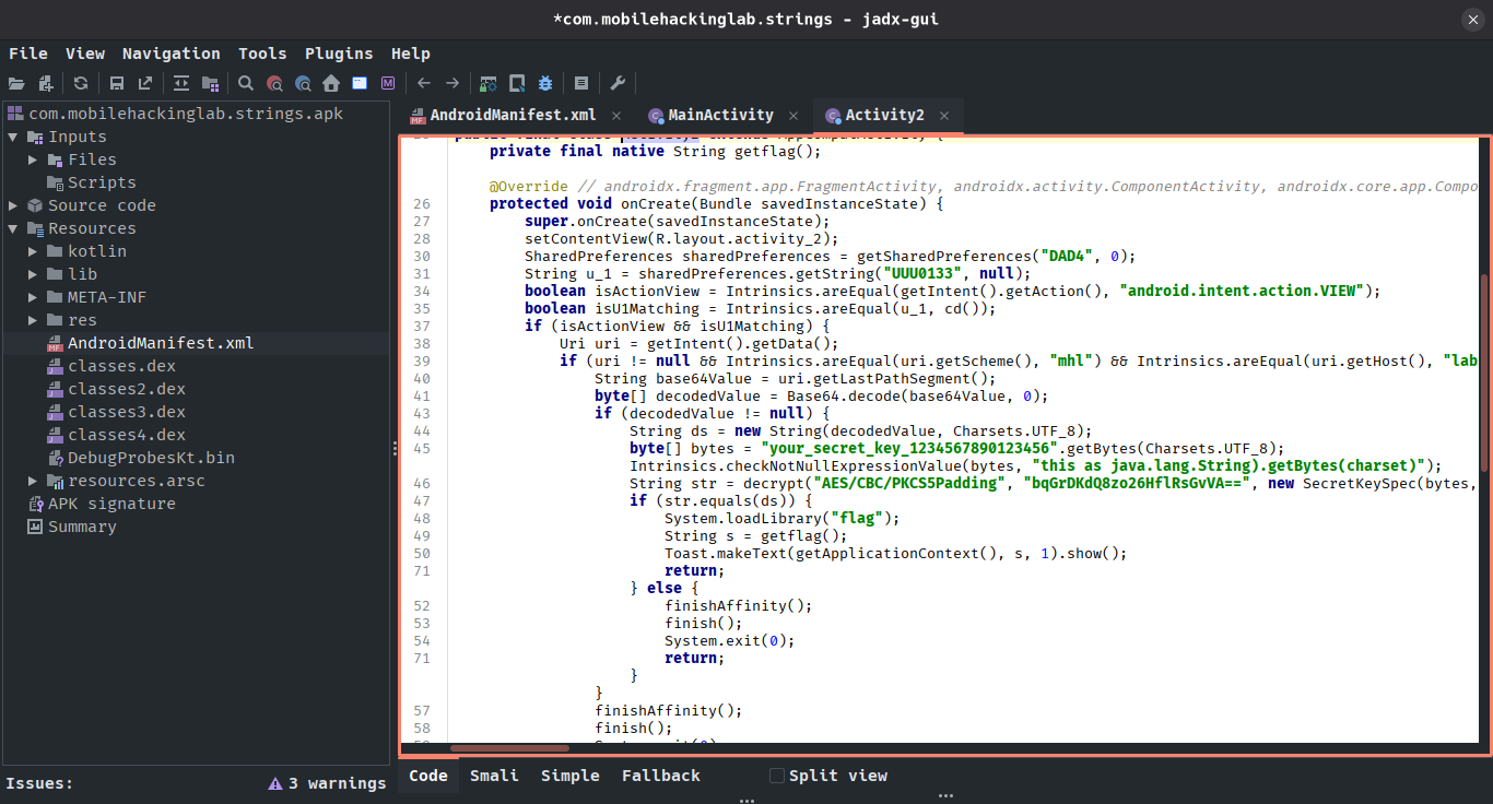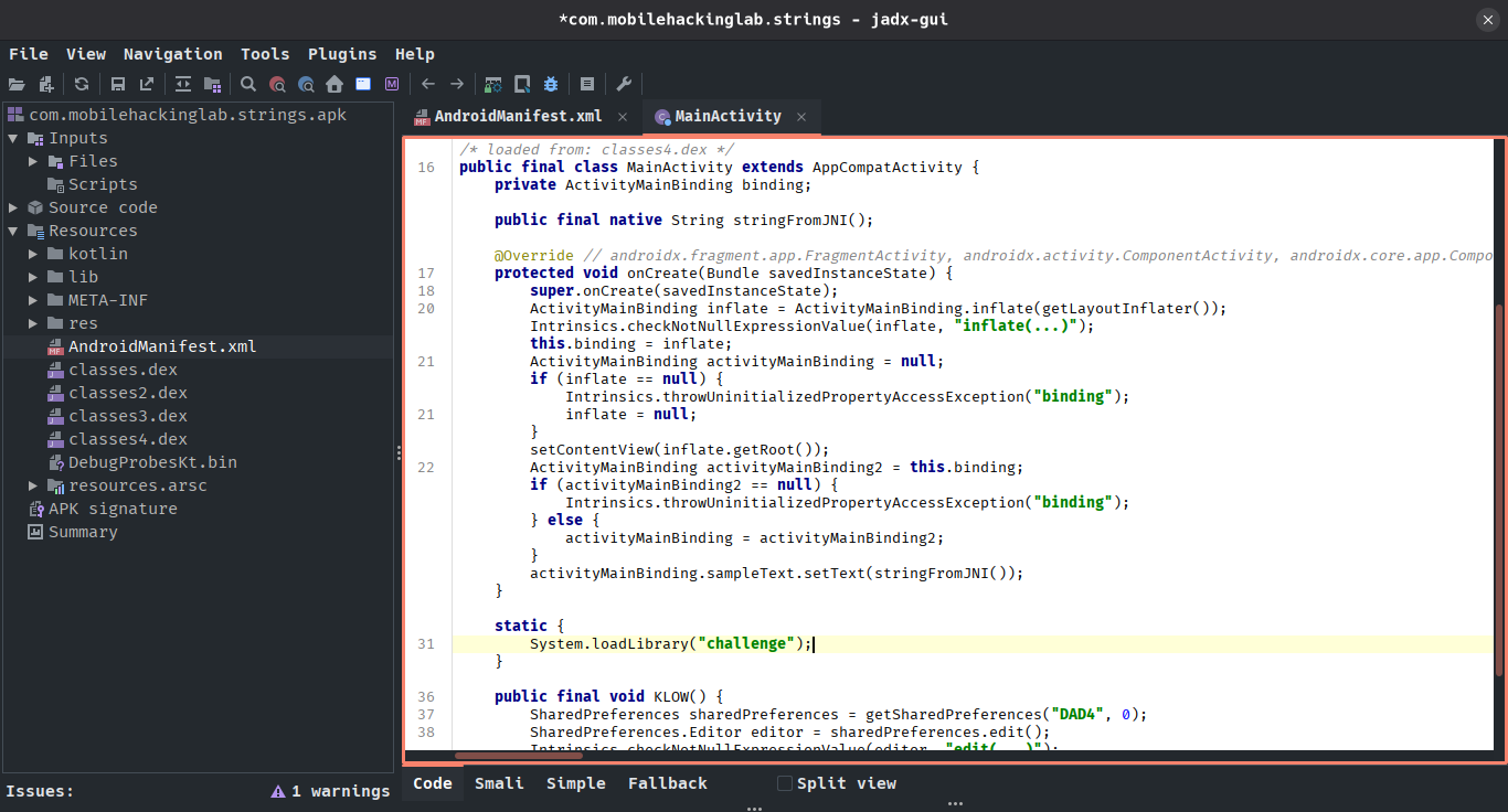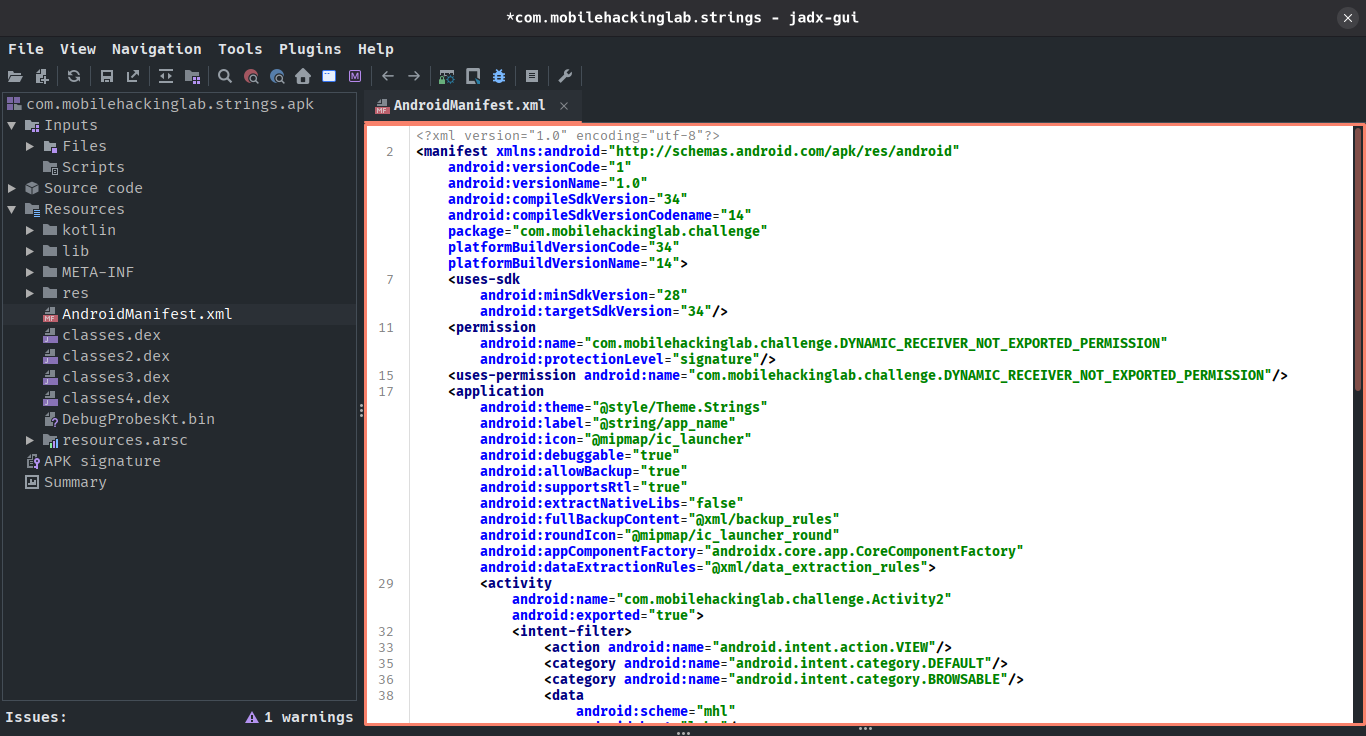 ❯ jadx-gui com.mobilehackinglab.strings.apk &
